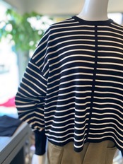 ボーダー柄がポイントとなり、シンプルながらもお洒落感を引き立てる一着です。