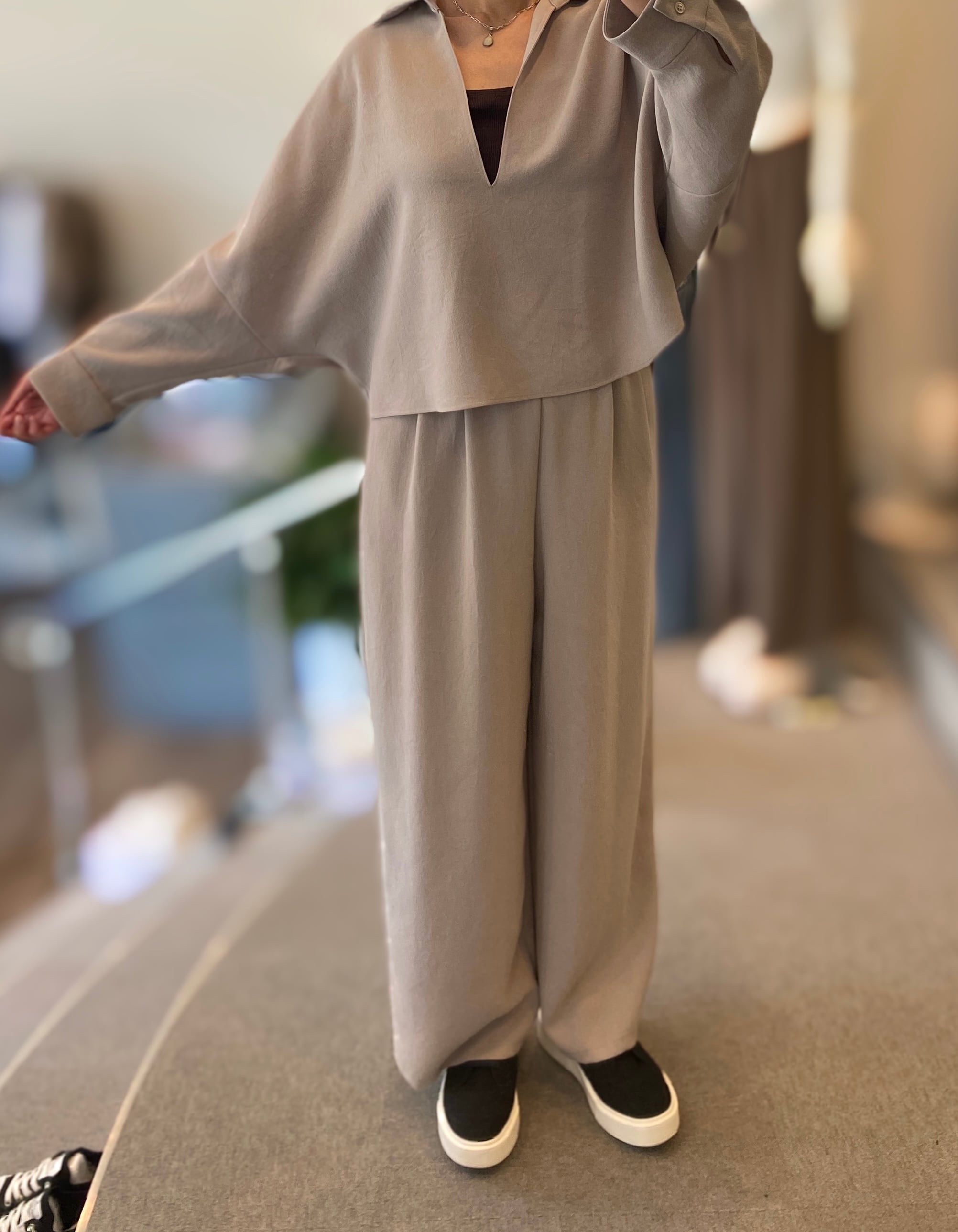 独自のとろんとした落ち感が魅力の[cafune]のパンツです。