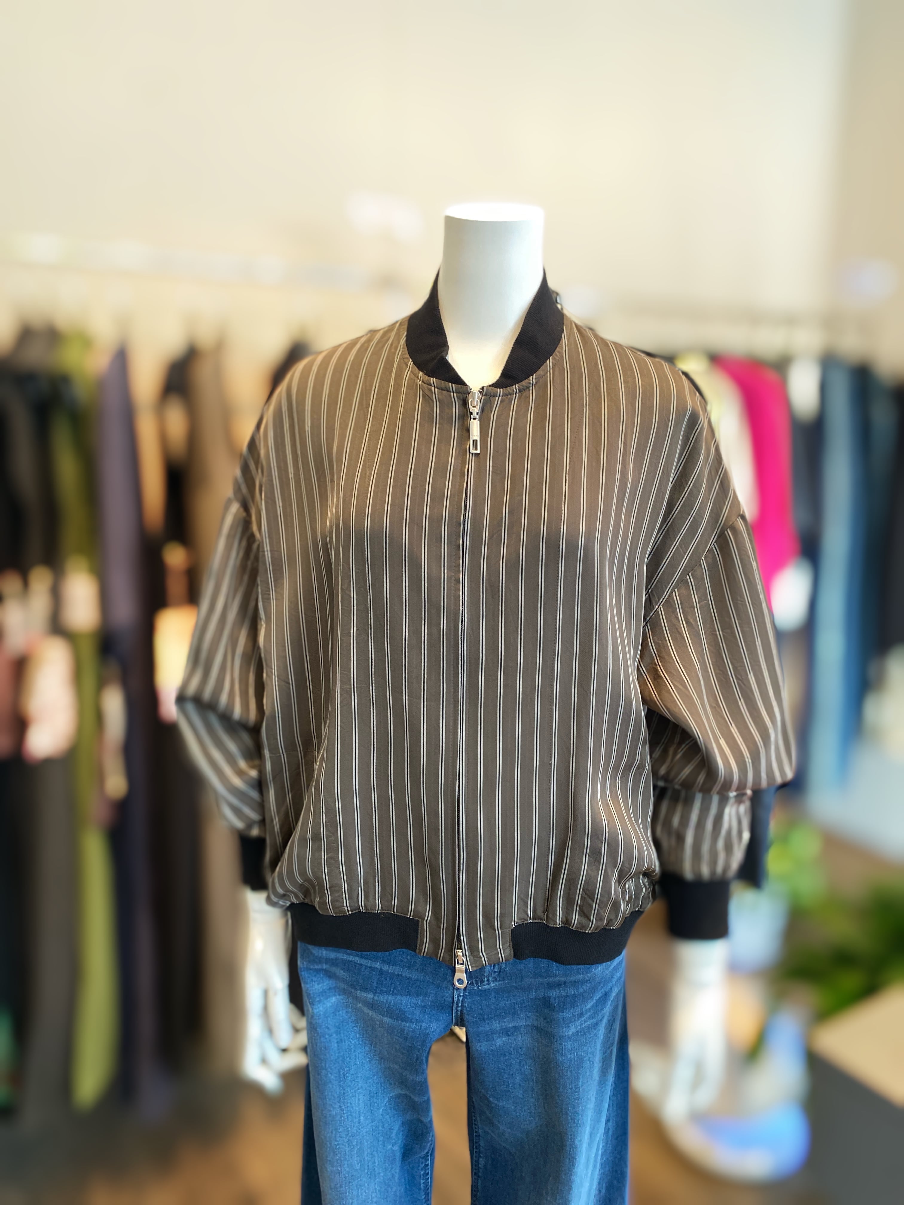 さらさらとした肌触りが特長の[WYTE]キュプラ ジップアップブルゾンです。
