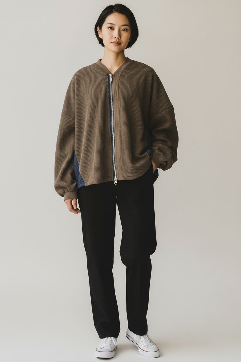 このカーディガンは、カジュアルなデイリーユースから少しきちんとしたシーンまで幅広く対応します。さらりとした素材感は、春先や秋口の重ね着にも最適です。ぜひ、この機会にスタイリッシュなジップアップカーディガンをあなたのワードローブに加えてみてはいかがでしょうか,