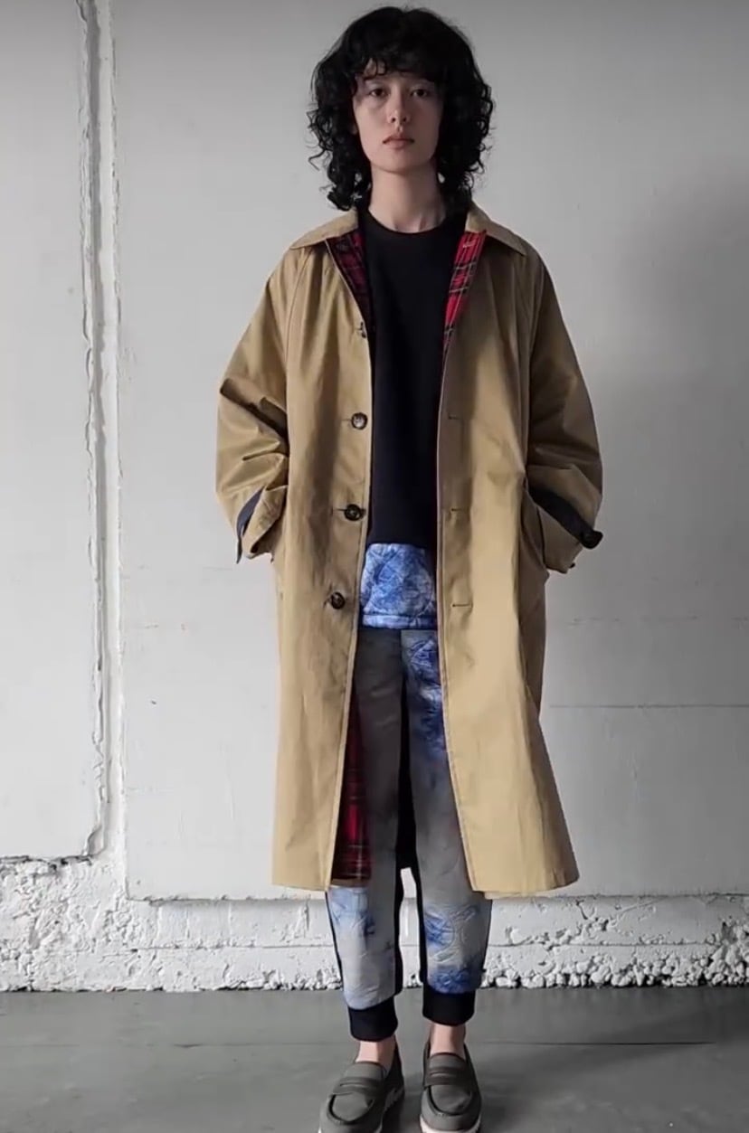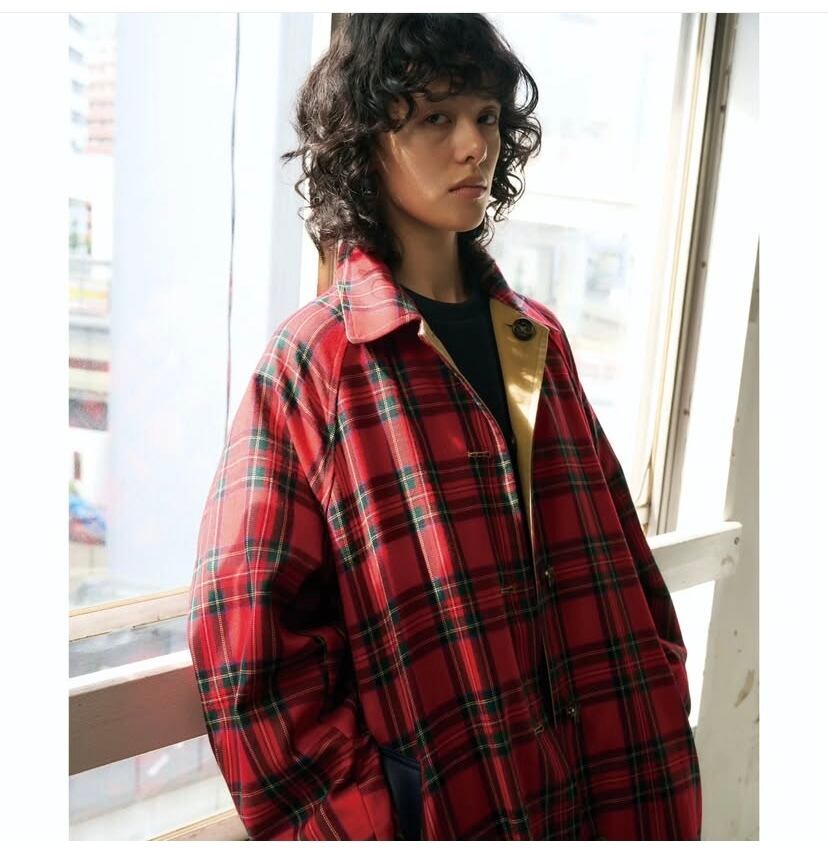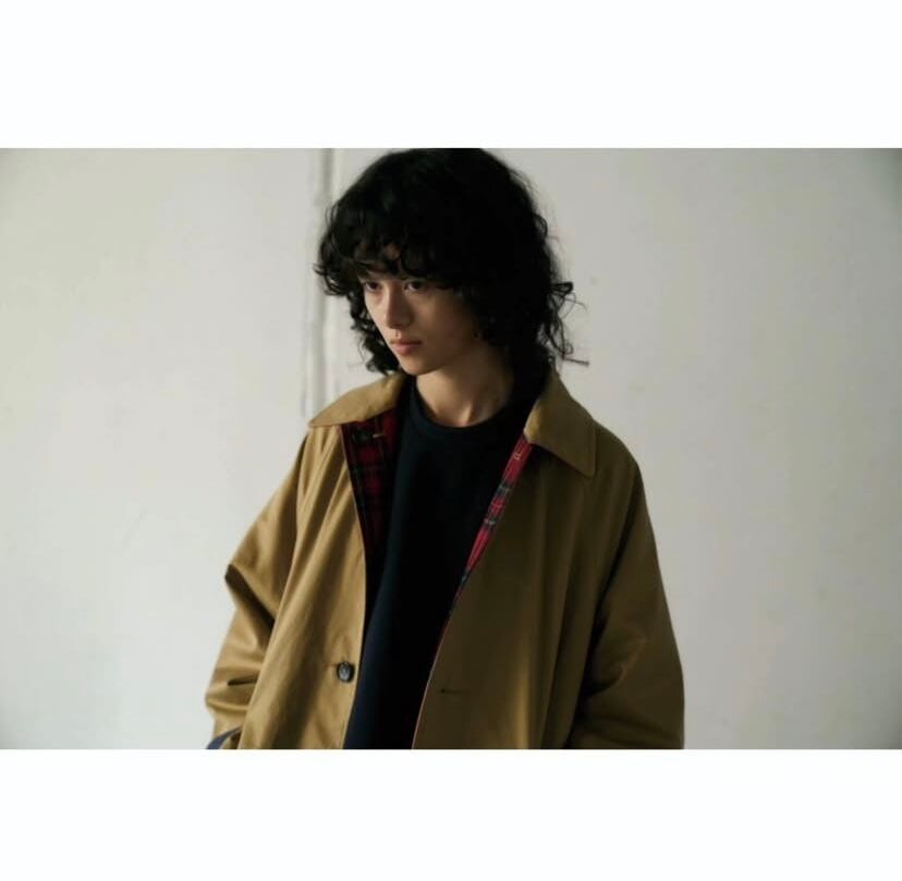 緻密に織り上げられた高密度の 60/2コットンギャバと厳選したメリノ梳毛2/48を使用した多色使いのチェックとのリバーシブルコート。