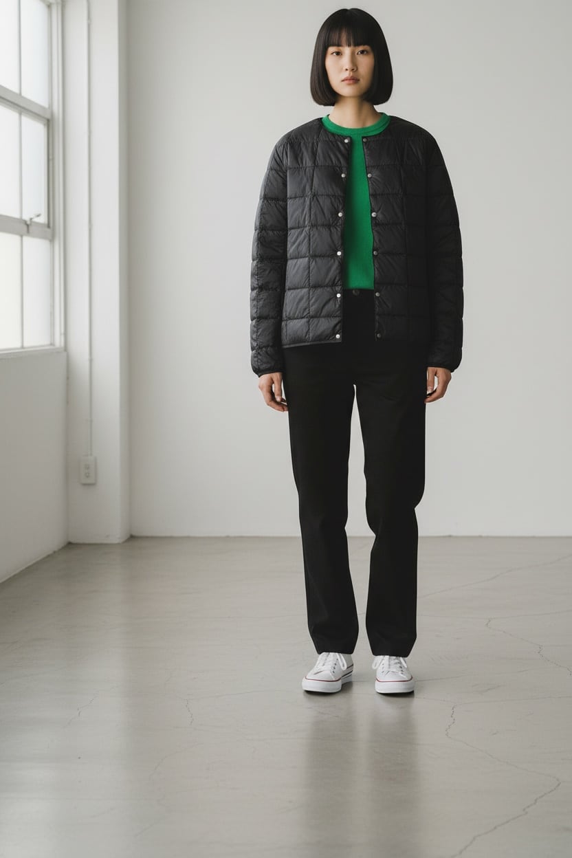 アウトドアシーンでもスタイリッシュに決まる【WYTE × TAION】コラボマウンテンパーカー。800FLPのフェザーを使用しているため、軽量ながらも暖かく、動きやすい着心地が魅力です。