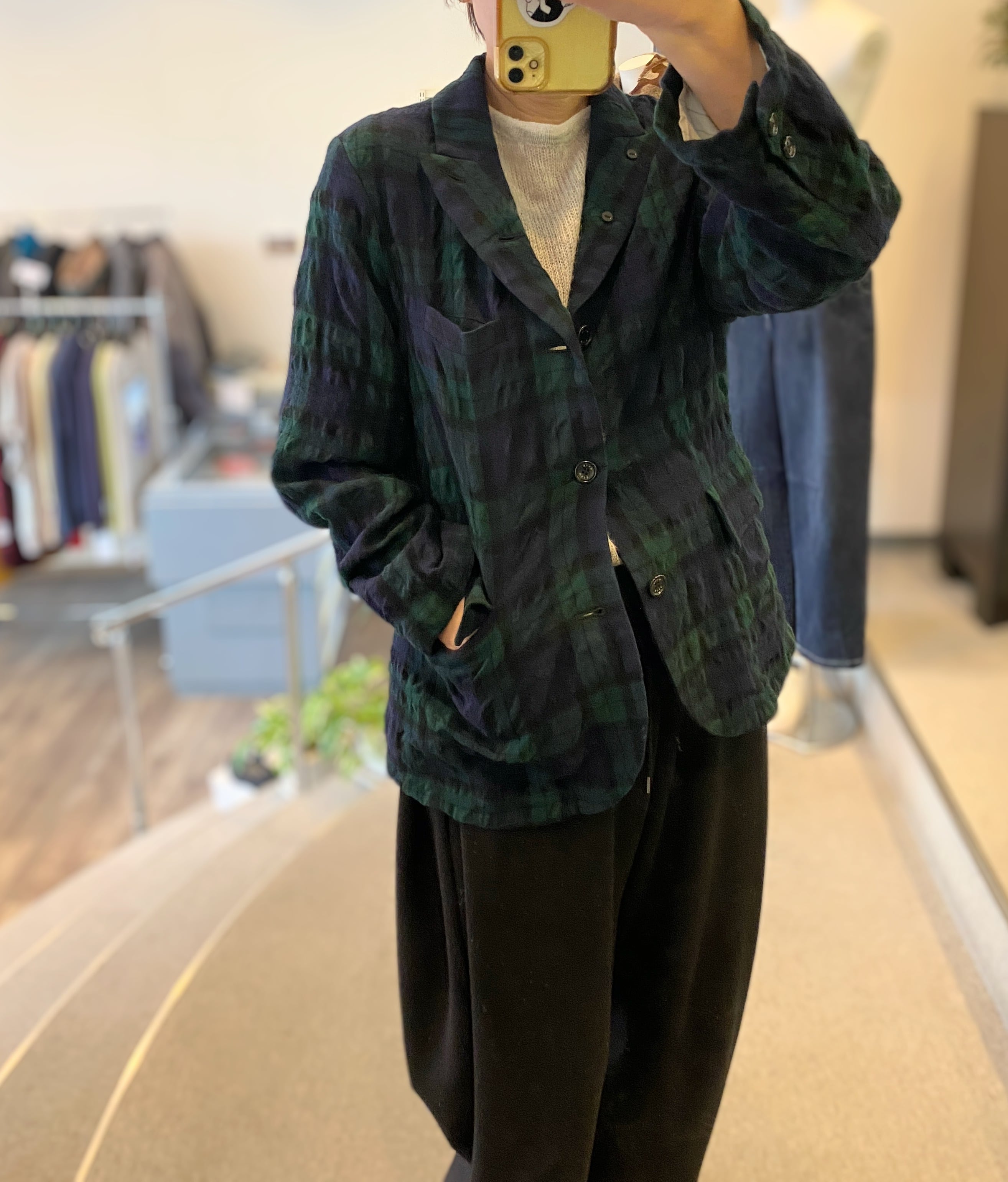 この機会に、軽やかでスタイリッシュなチェックテーラージャケットをぜひお試しください!