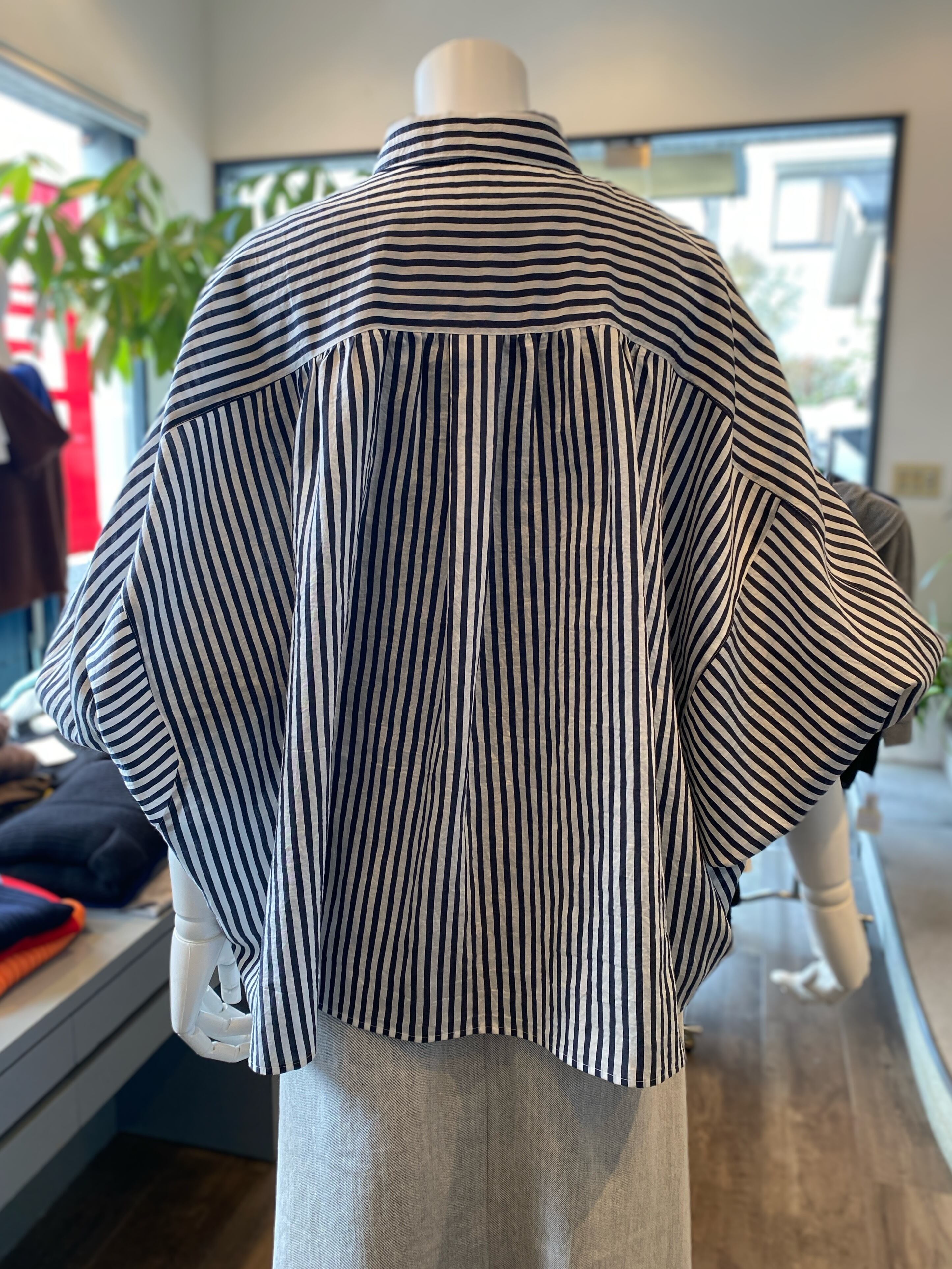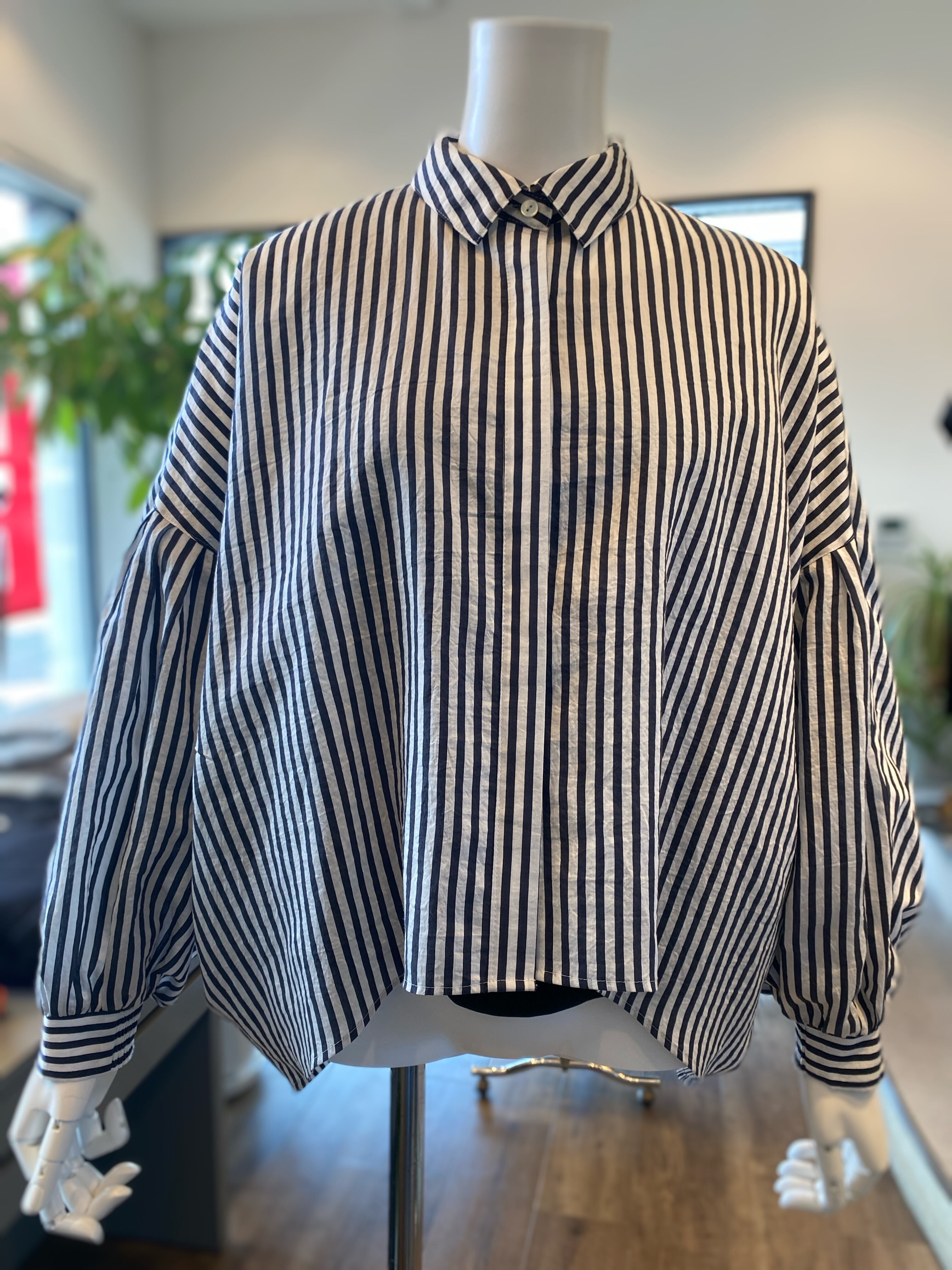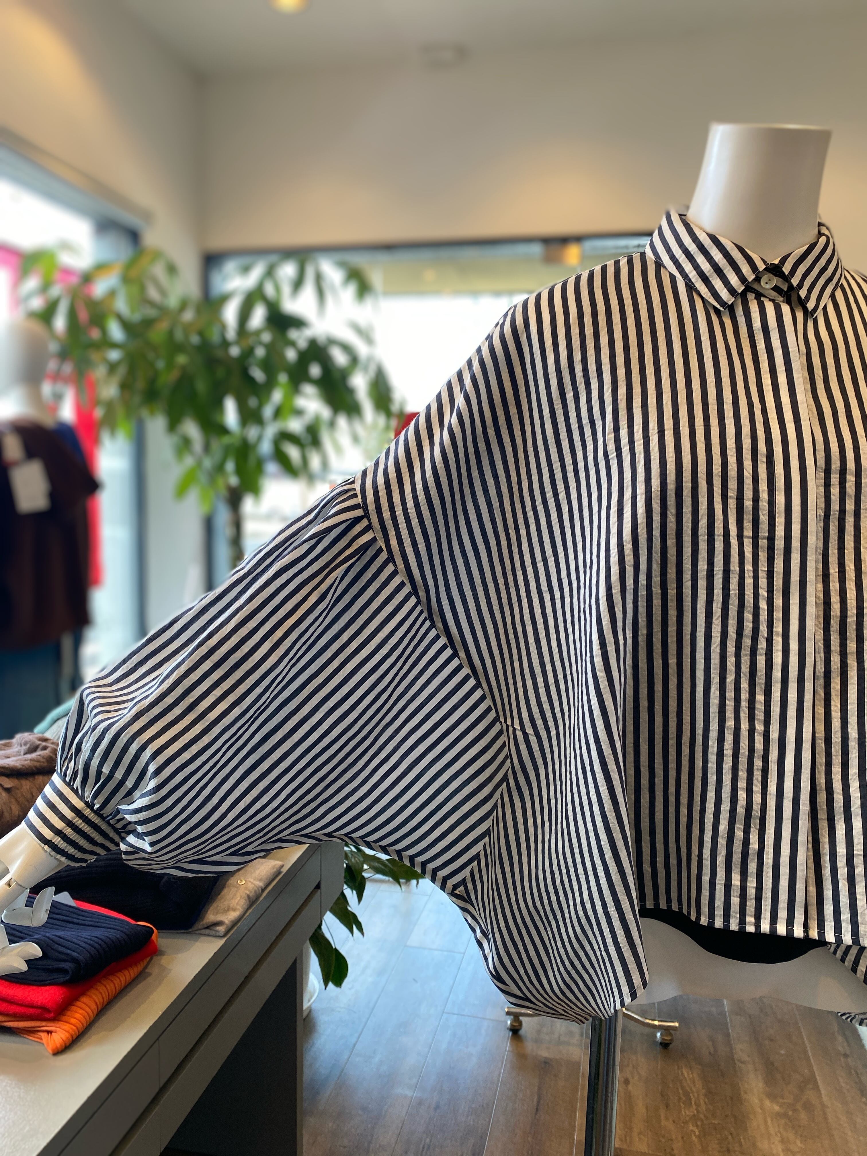 【ふんわりバルーンスリーブのストライプシャツ】