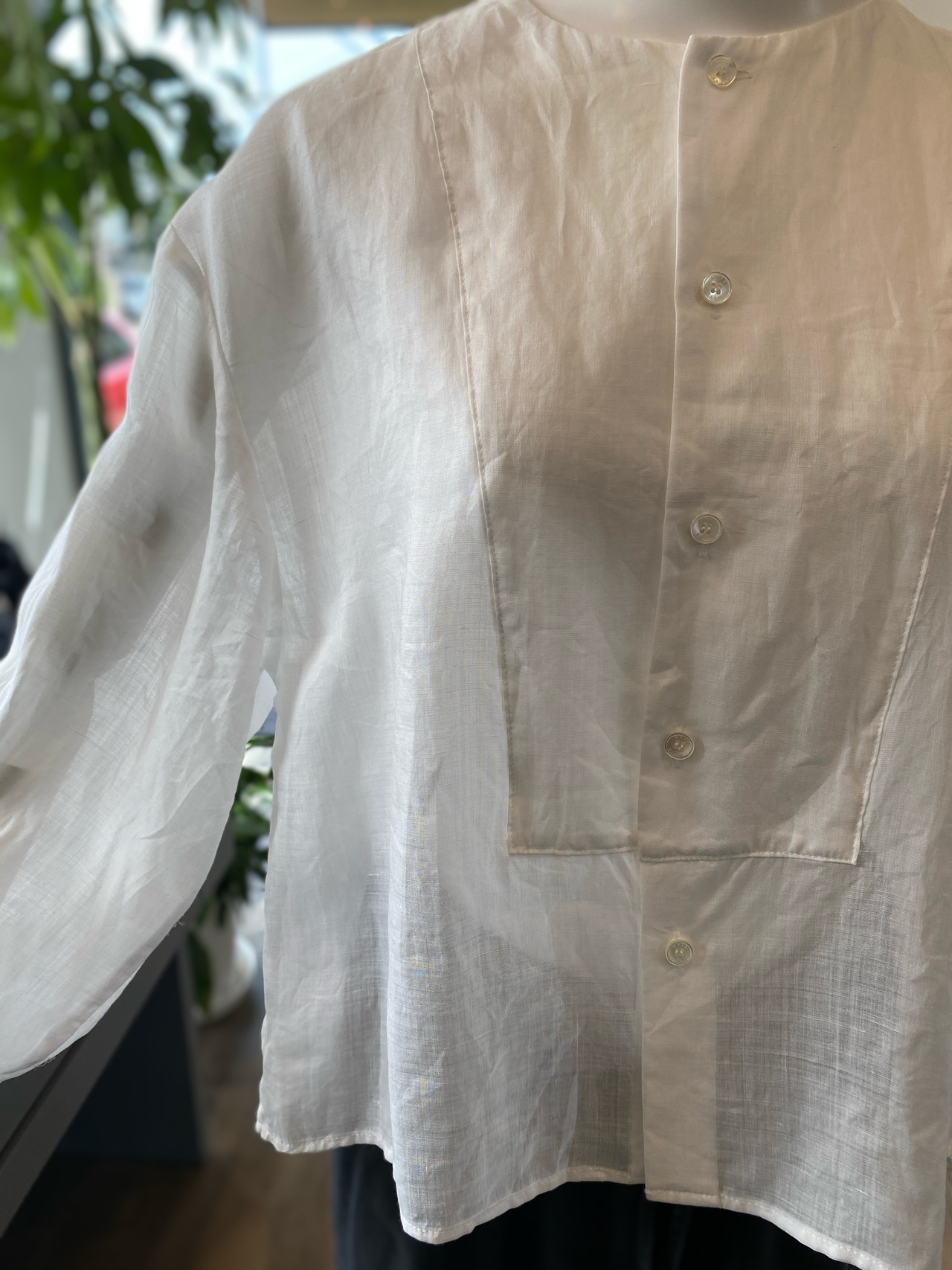 さまざまなコーディネートに合わせやすく、春から真夏にも麻の涼しげな透け感がおしゃれな一枚。