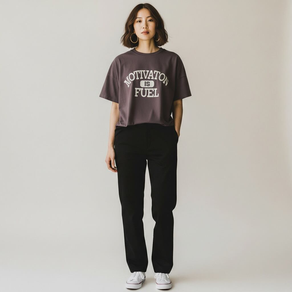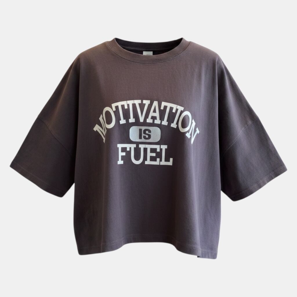 「やる気は燃料だ」—— 背中のメッセージがさりげなくかっこいい、大人のオーバーサイズT。