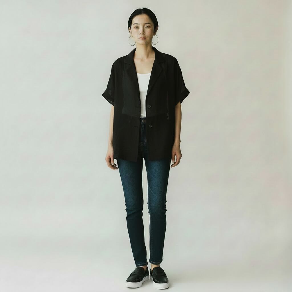 透け感のあるテーラージャケットです。