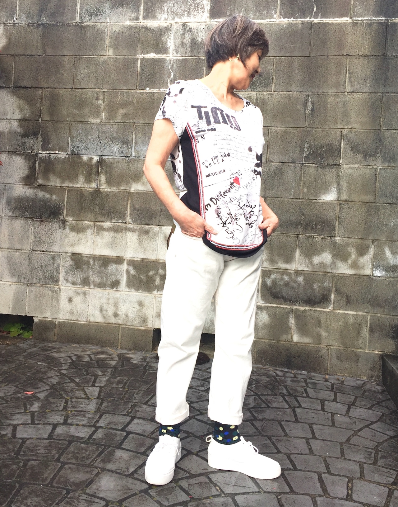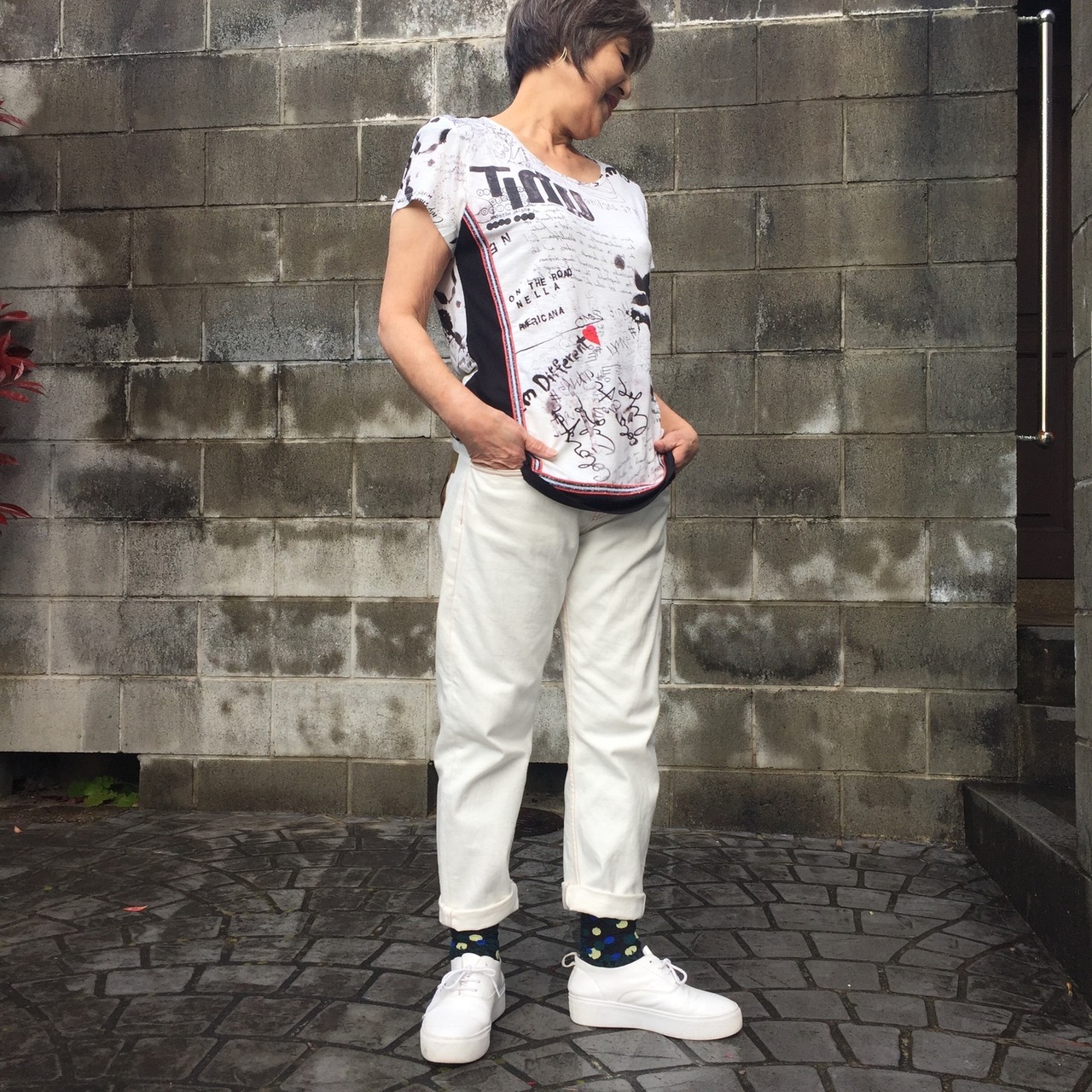 【カロ】イタリ製 ビスコース 白地プリント トップス